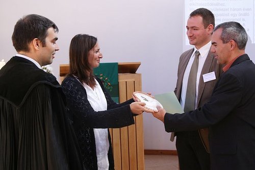 Az ökumenikus teremtésvédelmi munkacsoport tagjai – Béres Tamás, ifj. Gyimóthy Géza, Khaled László, Kodácsy Tamás, Kodácsy-Simon Eszter, Nobilis Márió, Szűcs Boglárka és Victor András – az idei teremtésünnepre is készítettek segédanyagot, a gyülekezetek környezettudatosságát segítő tanulmányokkal, bibliai vázlatokkal és gyakorlati ötletekkel.Kitartó, több éves munkájuk nyomán egyre több keresztény közösség lesz fogékony a teremtésvédelemre. Az ilyen kezdeményezéseket igyekszik elismerni kitüntetéseivel a református Ökogyülekezeti Mozgalom és az evangélikus egyház Ararát munkacsoportja. A Teremtés Hete idei megnyitóján a Tatai Református Egyházközség (képünkön) vehette át az Ökogyülekezeti díjat, a házigazda Balatonboglári Evangélikus Egyházközség pedigÖkogyülekezeti címet kapott.