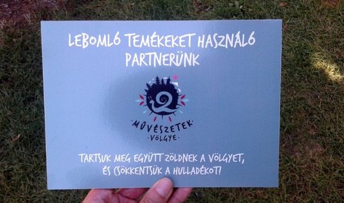 Ezen eszközök használatával a hagyományos, eldobható terítékekhez képest 70-90%-kal kevesebb karbonlábnyomot hagyunk maguk után, magyarán ennyivel kevesebb energiát igényel a gyártása. Stampf Krisztina elmondta, hogy a Művészetek Völgyében lévő harminc-harmincöt nagyobb gasztronómiai intézményből már közel egy tucat lebomló eszközöket használ. Jövőre viszont már mindenkinek ezeket kell használnia, hogy ily módon is óvják a Völgyet, amelyet ez alatt a tíz nap alatt lényegesen nagyobb megterhelés ér, mint az év többi napján.
