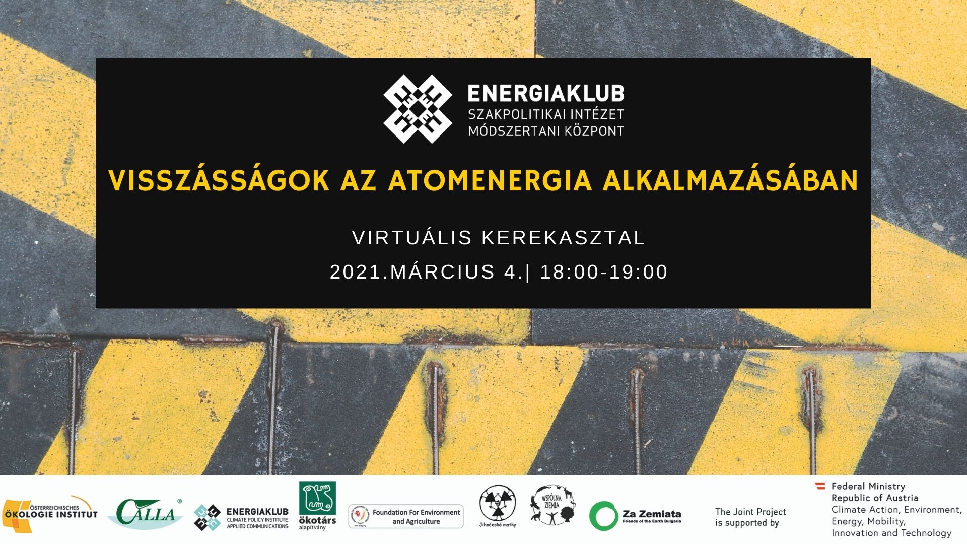 Tíz évvel a fukusimai atomerőmű-baleset után a Joint Project - Nuclear Risk & Public Control c. projekt keretében áttekintjük országaink (Csehország, Magyarország, Bulgária, Lengyelország) és az EU nukleáris helyzetét. Az Energiaklub két új tanulmányt is készít a témában: az egyik az atomenergia működési anomáliáit elemzi, a másik kifejezetten az atomenergia környezeti hatásaival foglalkozik. A projektet egy egy héten át tartó programsorozat kíséri.