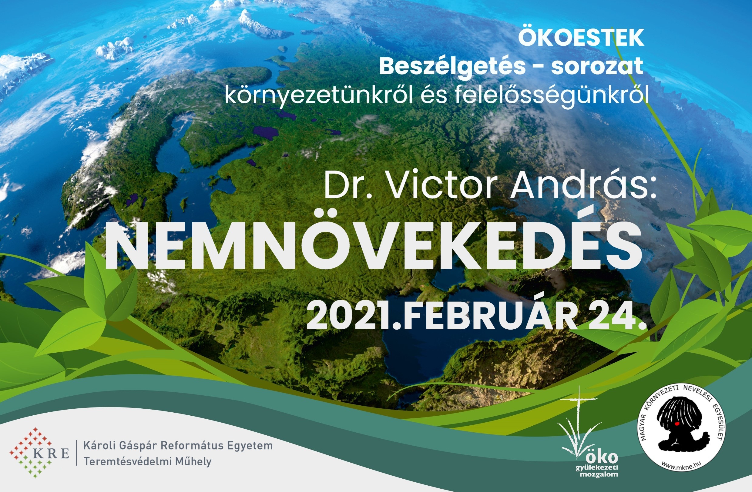 Február 24-én került sor az „Ökoestek” előadássorozat első idei alkalmára, amelyen közel kétszáz érdeklődő vett részt Zoom alkalmazáson keresztül. A sorozat az Ökogyülekezeti Mozgalom és a Magyar Környezeti Nevelési Egyesület együttműködésével jött létre, célja, hogy átfogó képet nyújtson a környezetvédelmi kérdésekről és azok teremtésvédelmi vonatkozásairól. Az első tavaszi alkalom témája a „Nemnövekedés” volt, Dr. Victor András előadásában, aki a Magyar Környezeti Nevelési Egyesület korábbi elnöke, jelenleg tiszteletbeli elnöke, az Eötvös Lóránd Tudományegyetem nyugalmazott kémia-szakos tanára, emellett a Református Ökogyülekezeti Mozgalom tanácsának aktív tagja.