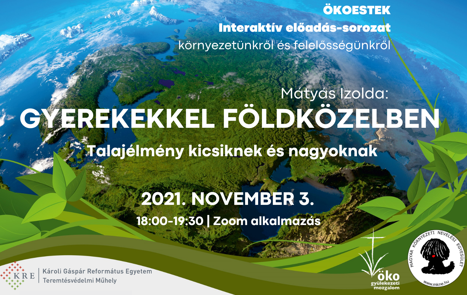 November 3-a egy borongós őszi nap volt, ám ahhoz, hogy valaki - az MRE Ökogyülekezeti Mozgalom és a Magyar Környezeti és Nevelési Egyesület – Ökoest-előadásán részt vegyen, ez alkalommal nem kellett esernyőt ragadva kilépnie a hidegbe. Ellenkezőleg: egy forró tea mellett az otthona kényelméből hallgathatta végig a Zoom-on tartott előadást. Aki mégsem élt ezzel a XXI. század nyújtotta lehetőséggel, annak a hagyományos olvasásos módot kínáljuk fel. Az előadó Mátyás Izolda, a téma pedig a talaj és a földközelség!